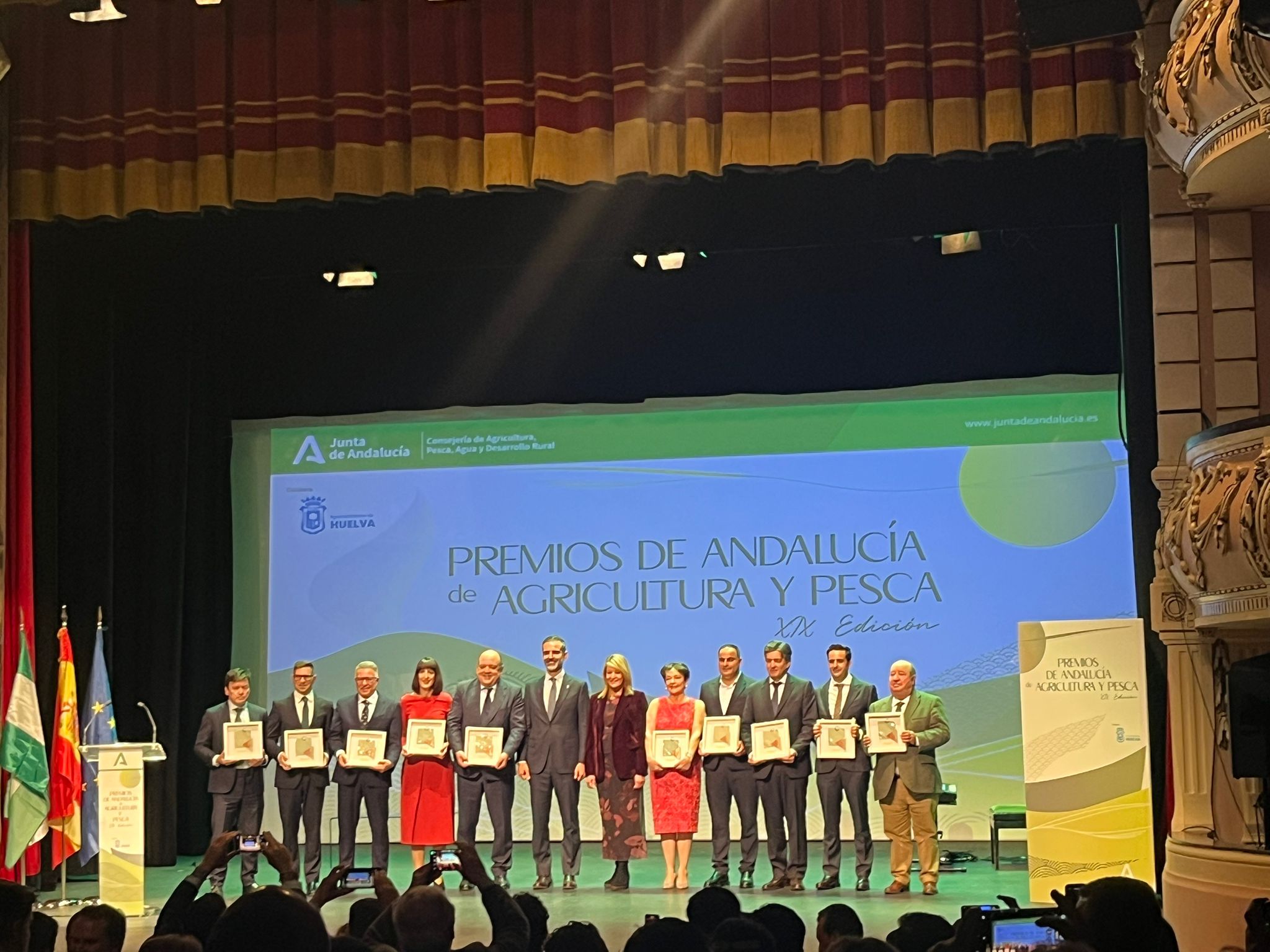 La ceremonia, presidida por el Consejero de Agricultura, Agua y Pesca, Ramón Fernández-Pacheco, tuvo lugar este martes en el Gran Teatro de Huelva, y contó con la presencia de la alcaldesa de la ciudad, Pilar Miranda, el presidente de la Diputación, David Toscano, y el delegado del Gobierno en Huelva, José Manuel Correa, entre otros representantes institucionales.
